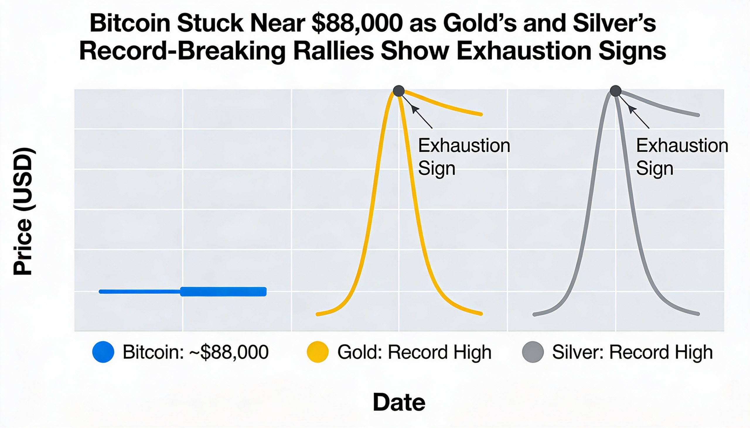 Bitcoin remained range-bound near $88,000 on Monday, showing little movement even as gold and silver surged to record highs before…